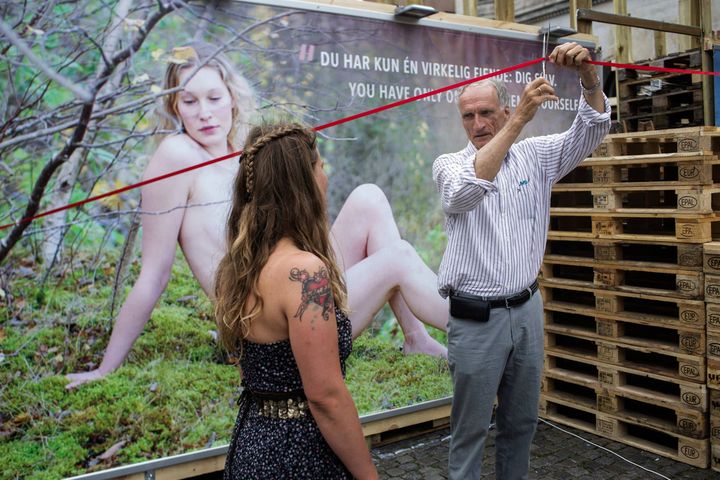 Se nøgenudstillingen, hvor bare bryster og baller indtog Nytorvet i Indre København