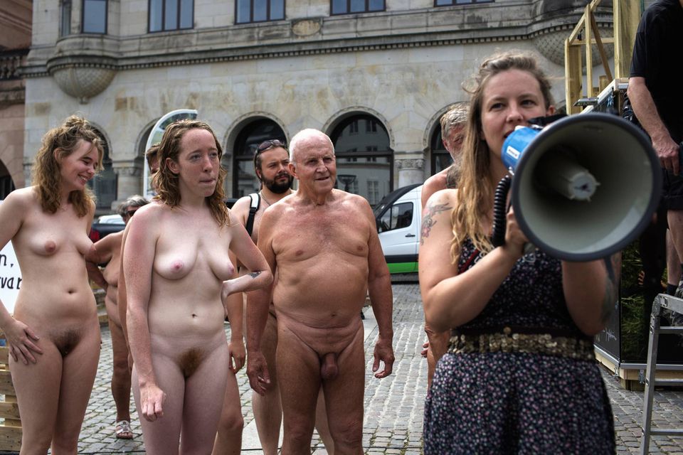 Efter åbningstalen og en mini-rundvisning forlod ministeren Nytorv på sin cykel, hvorefter fotos blev til virkelighed. Foreningen Danske Naturister havde arrangeret en nøgen-demonstration ved kunstværket, og så var der ellers bar hud i sommersolen.