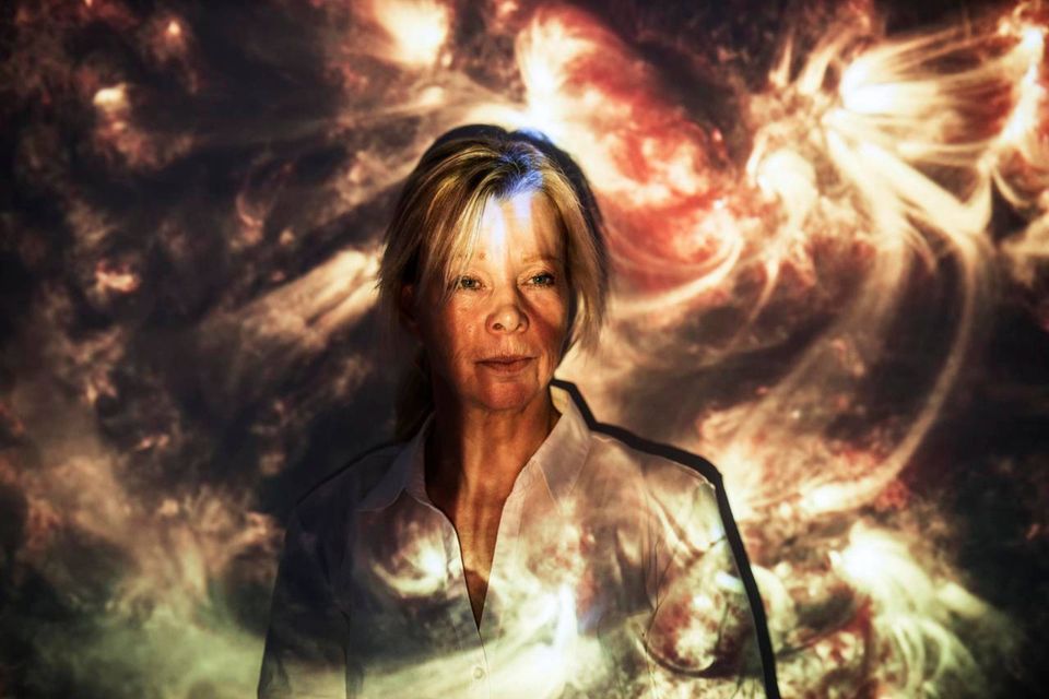 En fotograf fra Jyllands-Posten vimser rundt og fotograferer hende, mens en HD-projektor…