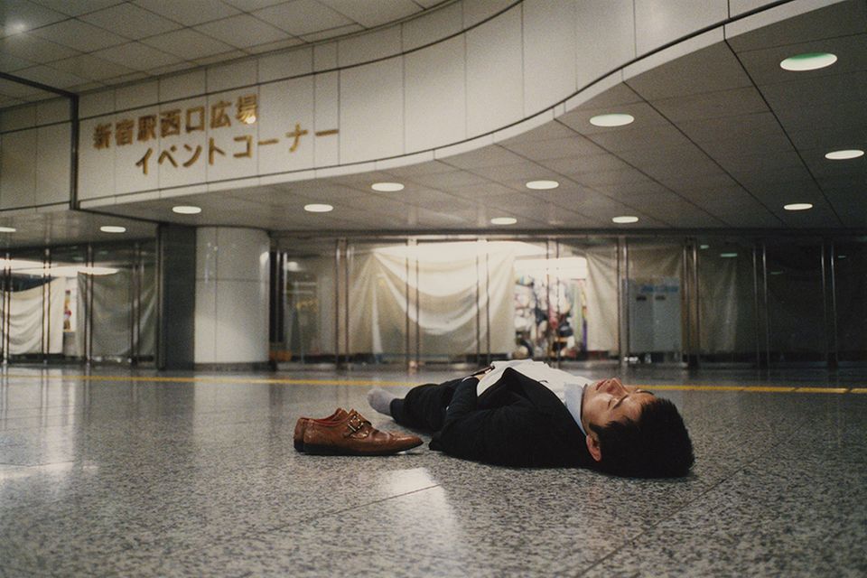 At se japanske forretningsfolk slingre rundt i en brandert er ikke noget særsyn, og ofte soves branderten ud et tilfældigt sted – måske efter at have lavet en "perronpizza". En japansk fotograf skildrer fænomenet – se de forbløffende billeder her.