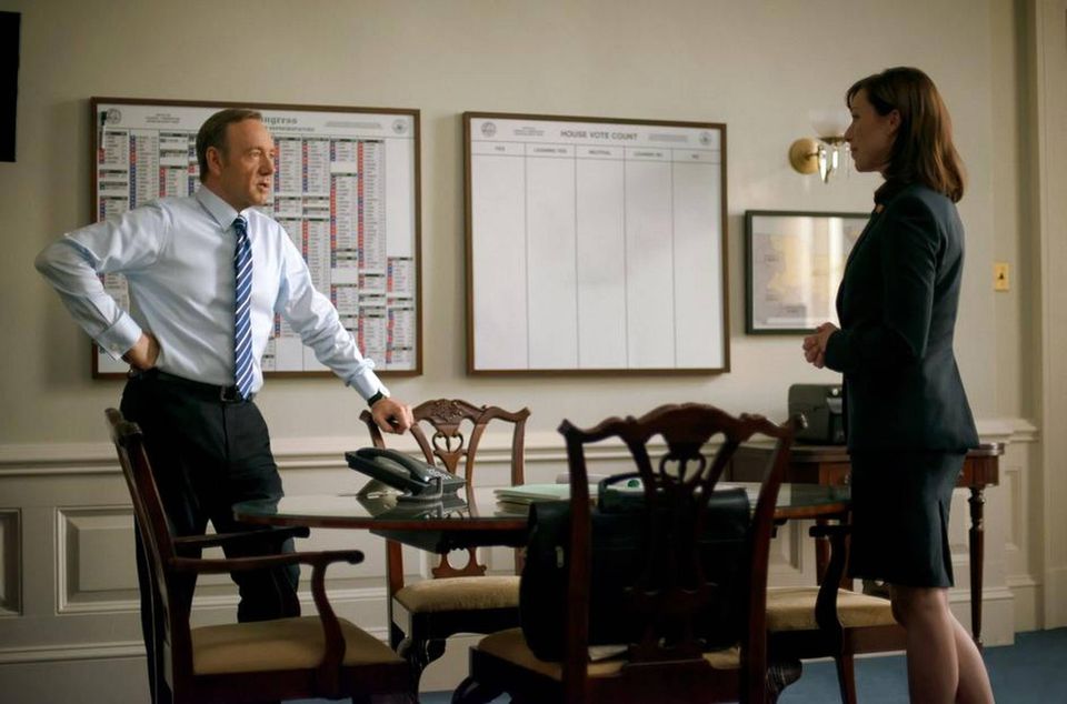 Med Kevin Spacey i hovedrollen som den ambitiøse og intrigante politiker Frank Underwood blev handlingen i den amerikanske udgave selvsagt henlagt til magtens centrum: Washington D.C.