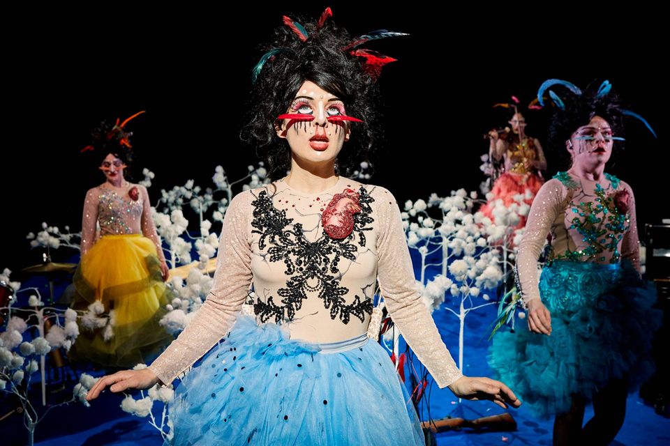 Med hjertet uden på tøjet, i stammekvindeoutfit med fjer i håret er Sort Samvittighed tilbage på scenen med deres nye forestilling ”I et forhold” om kærligheden i alle dens afskygninger.