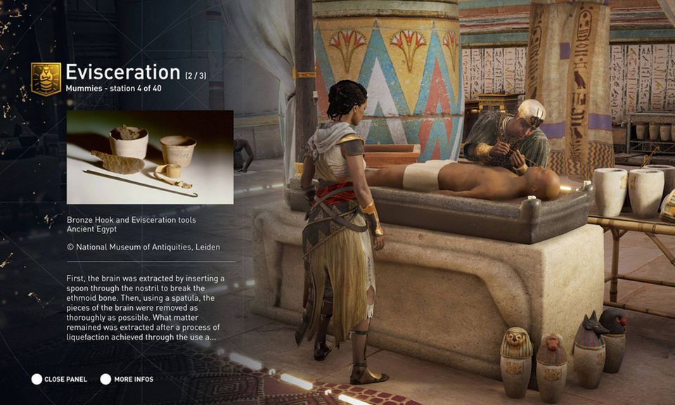 Men i Discovery Tour-udgaven af Assassin’s Creed Origins er muligheden for at snuble ind i fjender og slagsmål altså fjernet, og i stedet er noget nyt tilføjet: Indlagte, guidede tours, hvor lydspor aktiveres på bestemte steder i spillet, så man kan komme helt tæt på mumificerings-arbejdet, følge Kleopatras dagligdag eller gå rundt mellem pyramiderne, mens man hører historikernes fortællinger om, hvordan de blev bygget – og hvorfor. Der er tilføjet 12 guidede tours i spillet, som er skabt af egyptologer og specialister og varer 20 minutter hver.