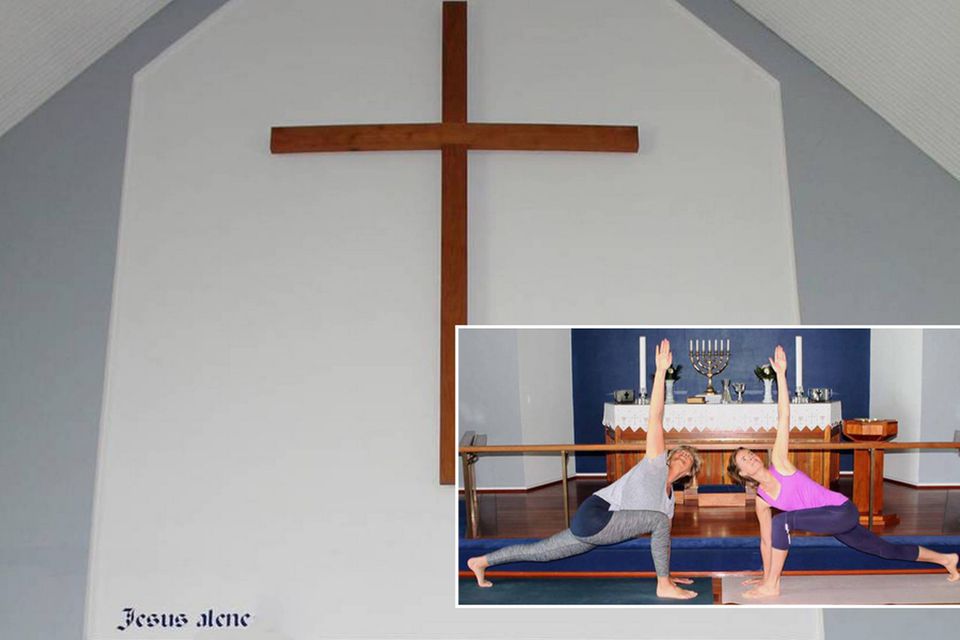 De dyrker yoga under korset i Strandby