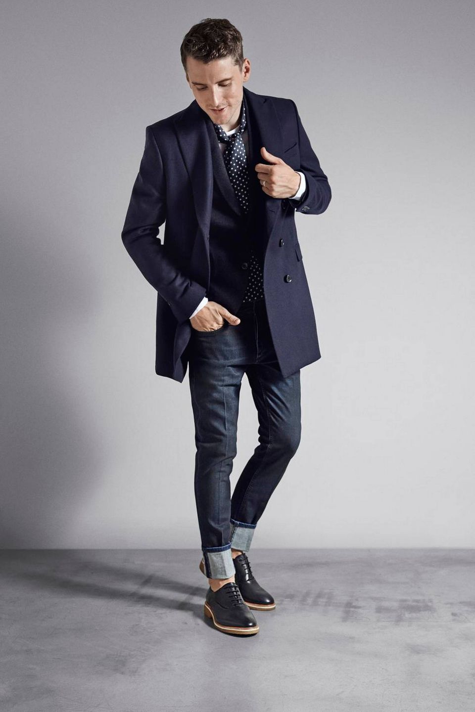 Fra Tommy Hilfiger Tech Tradition kommer dette look med blazer til 2.700 kr., chinoes til 1.500 kr. og en lækker duffle-taske til 5.300 kr. Alt i en tern, der leder tankerne til Skotland og det smukke højland.Skal man af sted til storbyen, er det med at være praktisk, men smart klædt på. Danske Jack & Jones har fået den Italienske designer Daniele Alessandrini til at designe denne kollektion for sin Premium-linje. Den forener på bedste vis det afslappede, skødesløse look med en stram elegance. Frakken koster 1.499 kr. Blazeren koster 1.199 kr., og de stramme jeans med det høje opsmøg koster 699 kr. Fotos: PR