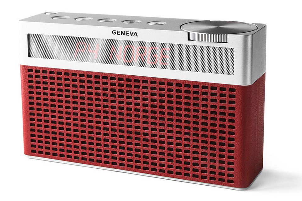 Den lille Geneva-radio kombinerer retro-detaljer med minimalistisk design i syntetisk læder og aluminium, og minder om en moderne version af en B&O- eller Tandberg-radio.