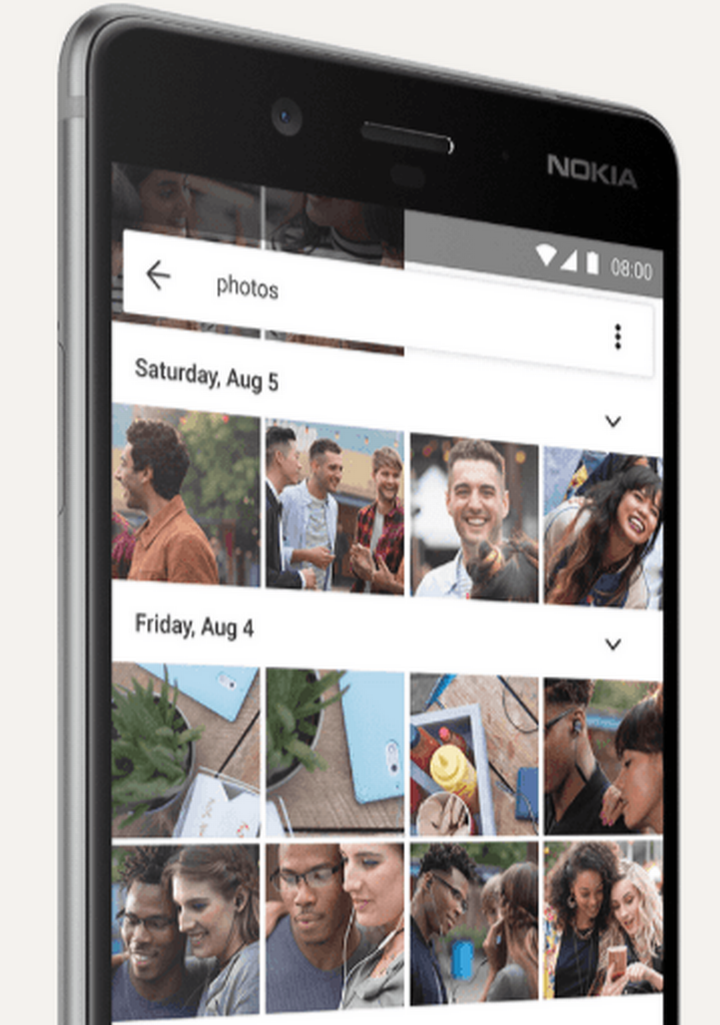 Som på alle andre Android telefoner er der blot tale om, at Nokia 8 (3, 5 og 6) uploader billeder til den gratis version af Google Fotos. Det kalder Google ”høj kvalitet”. 16 megapixels billeder, og kvaliteter derunder, komprimeres så de fylder mindre. Videoer i en kvalitet over 1080p reduceres til 1080p opløsning.