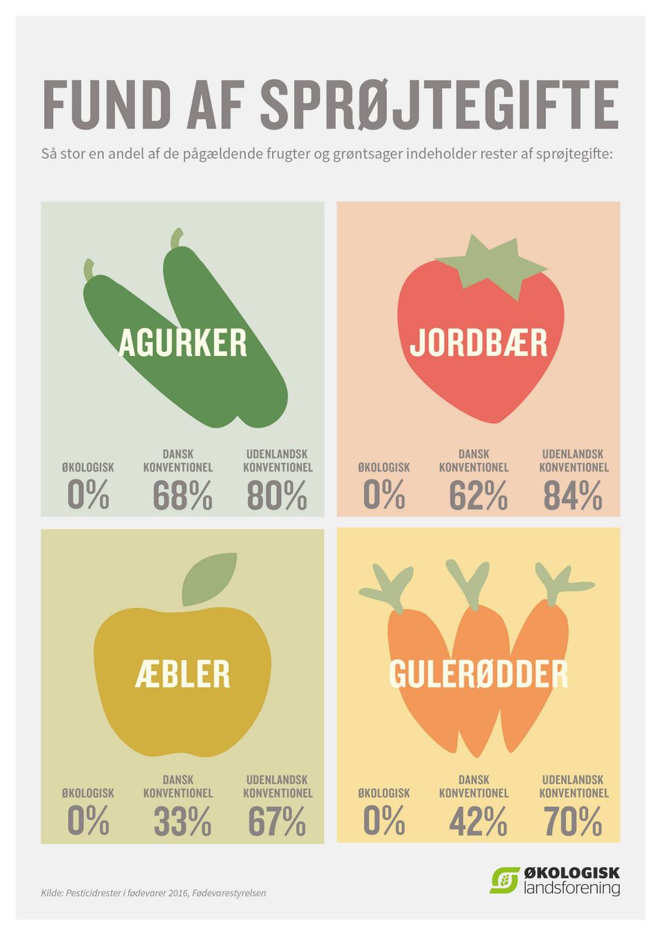 Sådan lyder beskeden i Fødevarestyrelsens nye Pesticidrapport fra 2016.