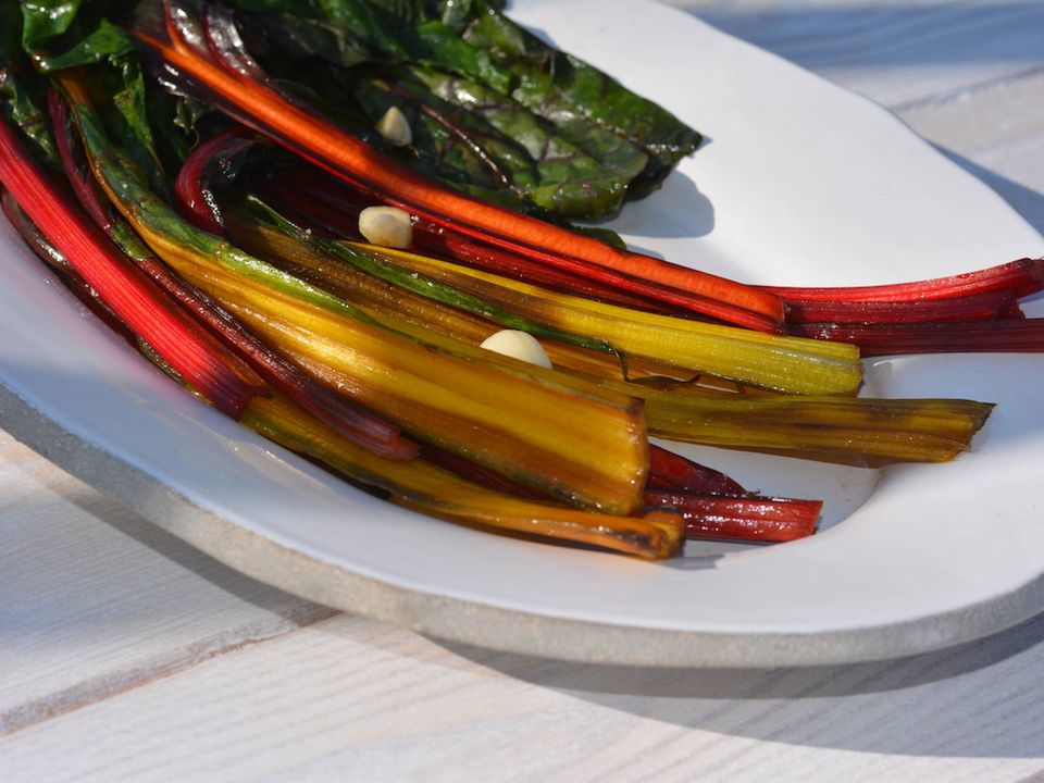 Hvidløgssauterede regnbuebeder