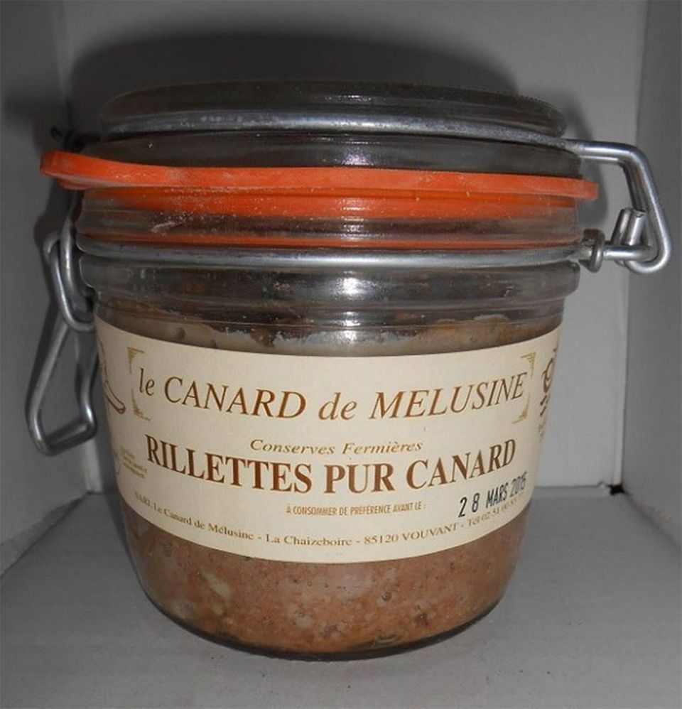 Der er nu ikke noget som and kogt i sit eget fedt. Selv efter jul vil du nyde denne herlige grove anderillettes lavet på låret på en skive ristet brød. Produktet kommer fra en lille virksomhed ved navn Le Canard de Melusine i departementet La Vendèe i Loire.