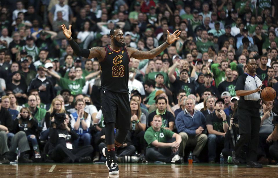 Det amerikanske basketball-ikon LeBron James stod for 35 point, 15 rebounds og ni assister i opgøret og spillede samtlige 48 minutter for udeholdet. Foto: Elise Amendola/AP