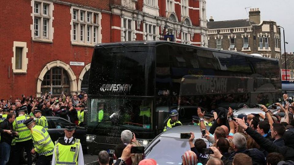 Og så var det i aftes, at Premier League-klubben West Ham tog afsked med sin hjemmebane igennem mange år, Upton Park. Det skete med hooligans pinlige angreb på spillerbussen fra modstanderholdet, Manchester United. Fodboldbøller kastede med flasker og dåser mod bussen, da den ankom til stadionområdet. West Hams ledelse har varslet livsvarige karantæner til de skyldige.