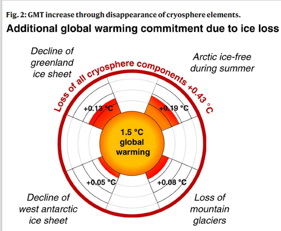 I studiet har forskerne modelleret, i hvor høj grad en total afsmeltning af bjerggletsjere den grønlandske Indlandsis, det vestlige Antarktis og den arktiske havis i sommertiden vil bidrage til den globale opvarmning.