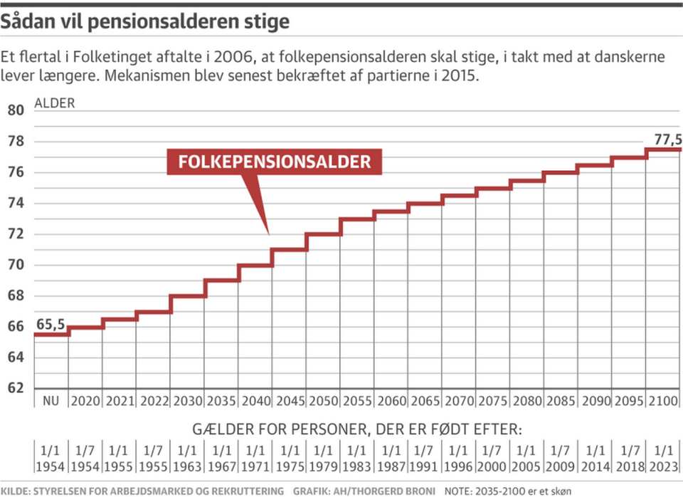 I takt med at danskerne lever længere, har politikere ad flere omgange besluttet at hæve pensionsalderen gradvist.