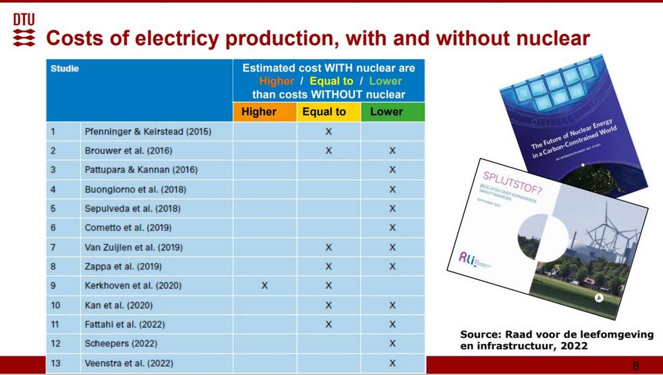 Kun et af de 13 studier er nået frem til, at elproduktionen samlet set bliver dyrere med atomkraft.