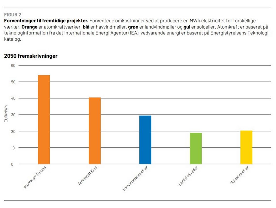 De 16 eksperters rapport henviste f.eks. til IEA’s forventning om, at strøm fra solceller i 2050 vil koste ca. 20 euro/MWh.