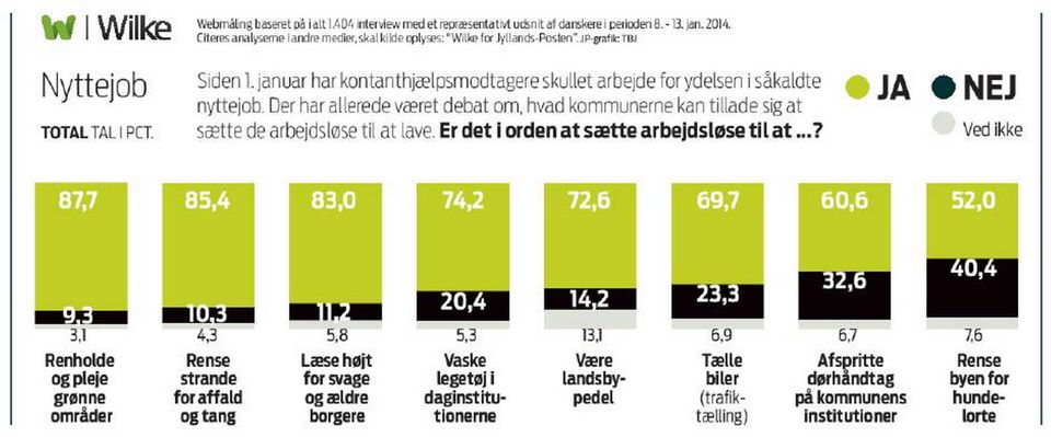 Aktivering: Der er stor opbakning til nyttejob, men ikke alle synes, at det er i orden, at kontanthjælpsmodtagere skal fjerne hundelorte, viser en måling.