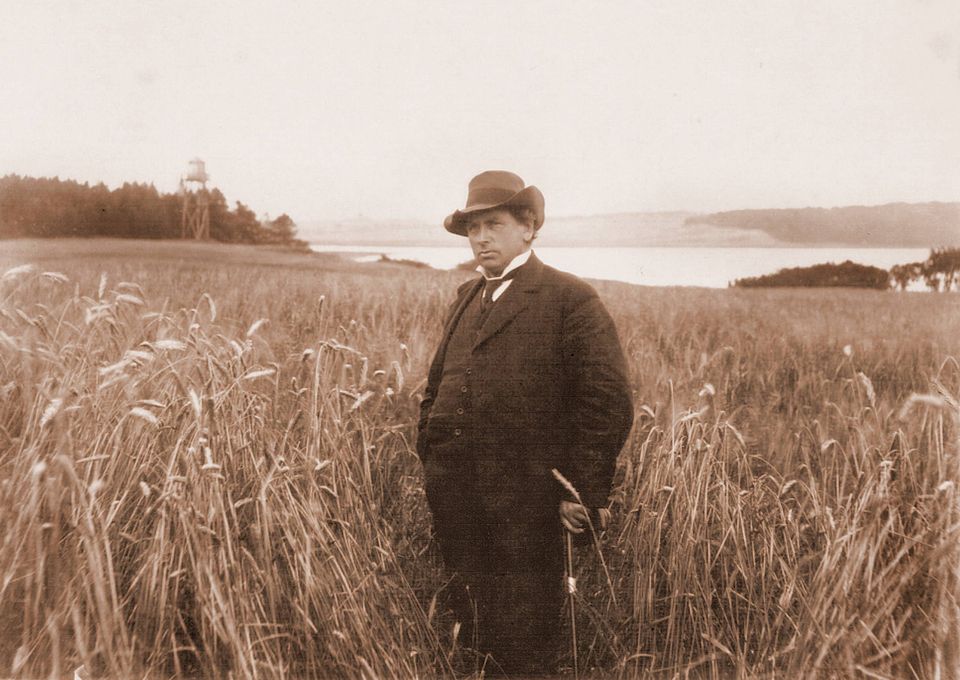 Sådan fortæller Jeppe Aakjær selv om sin proces i forordet til ottende udgave af “Rugens sange”. Projektkoordinator Bodil Jacobsen på Jenle, drevet som museum af Aaakjærselskabet, viser et gammelt billede frem af Aakjær solidt plantet i rugmarken foran hjemmet, der dengang var en arbejdende gård.