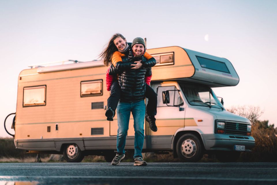 Jeg står i ly for forårsregnen under et vindblæst træ og bliver mødt af det unge kærestepar Malene Fredslund Løkke og Aske Frederiksen, der kommer rullende i deres hjemmebyggede autocamper, en hvid-gul Peugeot J5 fra 1990.