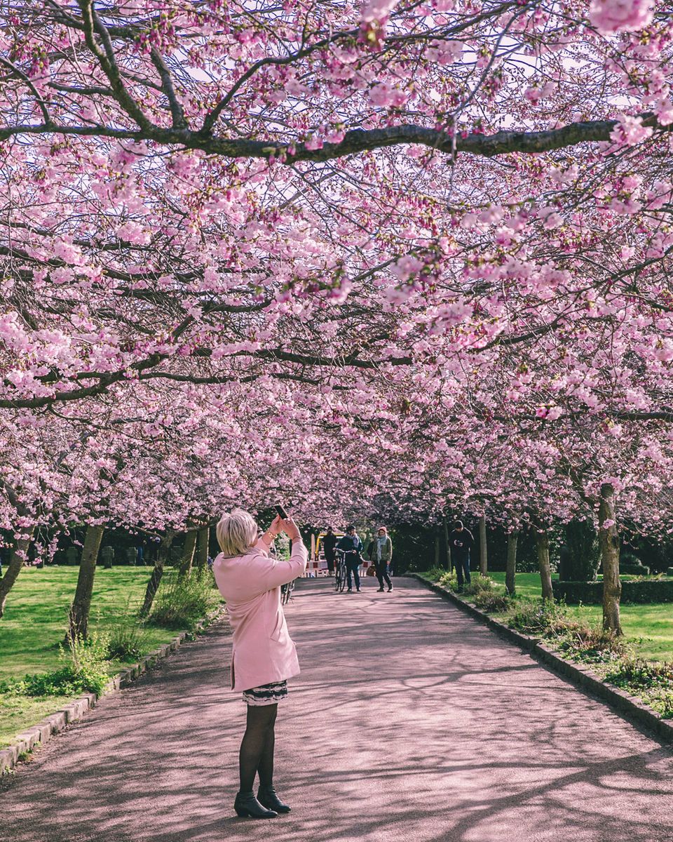 Bispebjerg Kirkegård tiltrækker mange besøgende, når kirsebærtræerne blomstrer. Foto: Thomas Høyrup Christensen