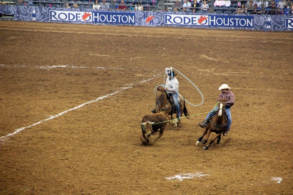 Country-musikken er en af de ting, der skal opleves, når man besøger Texas. En anden helt klar nødvendighed er den ultimative cowboysport, rodeo. Fokuserede, mutte cowboys, som kaster sig rundt i arenaen efter vilde tyre, springende heste og skræmte kalve, så deres hatte flyver af. I Houston bliver årets store rodeo holdt på det kæmpestore indendørs stadion Reliant Park. Der lugter lidt af stald, og støvet bliver hvirvlet op af de mange gæsters cowboystøvler. Vi falder lidt udenfor beklædningsmæssigt, da vi hverken har ornamenterede skjorter, spidse støvler eller bredskyggede cowboyhatte på. Men vi finder vores pladser, og efter en sikkerhedsmeddelelse kan rodeo begynde. Der er skruet helt op for det kunstige lys, og det er både nervepirrende og tryllebindende at se de halsbrækkende cowboy-stunts, når rytterne kaster sig af hestene for at fange kalve og svinger med lassoer. Det mest imponerende er dog, da de skal forsøge at holde sig fast i sadlen på en vild hest, der desperat kæmper for at smide dem af. Cowboyerne ligner mest af alt små kludedukker, som deres kroppe flyver rundt i ubehagelige og surrealistiske positioner.