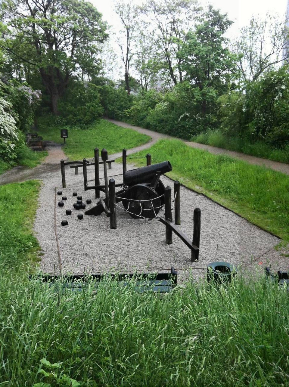 Vi fortsætter turen ad de mange stier, som løber langs den gamle fæstningsvold og snor sig mellem hinanden, så der hele tiden er mulighed for at følge endnu en sti op til voldens næste niveau. Vi står nu med udsigt til kanalen, som løber fra Københavns havn rundt om Christianshavn.