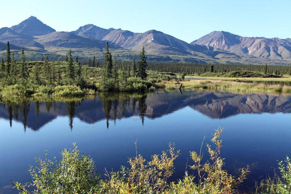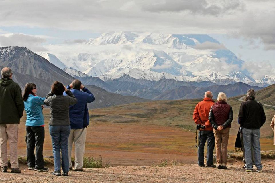 Fra mødet med oceanet og de indtagende fjorde er der noget frygtindgydende over Mt. McKinley, når man betragter Nordamerikas højeste bjerg rejse sig i sin massive hvide vælde foran os. Vi befinder os næsten 400 kilometer nord for Anchorage og knapt hundrede kilometer inde i Denali National Park, hvor vi står på et velvalgt udsigtspunkt med uforstyrret udsigt til Nordamerikas højeste bjerg. Kun enkelte skyer hviler dovent over gigantens top, og giver dermed et af de sjældne syn af den 6.168 meter høje mastodont, som ellers oftest er gemt bag skyer. Lige foran os breder tundraen sig i det uendelige til alle sider. Enkelte af de brune Grizzly og deres mindre fætre, sortbjørnene, lunter rundt i vildnisset efter bær. Før vinteren melder sig, skal bjørnene have fyldt godt op med mad, inden de mange måneders dvale sætter ind. Længere ude i horisonten anes flere hjorte-arter, blandt andet den amerikanske rensdyrrace, Caribou, og masser af elge, som spæner ud over de lavere liggende enge.