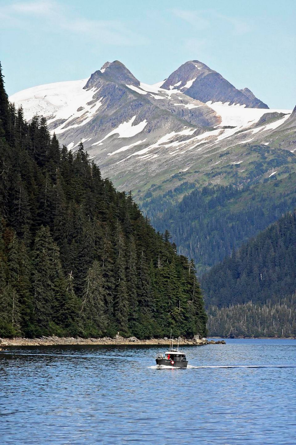 »Jo, I befinder jer lige nu i et af Alaskas store vidundere. Husk på, at intet sted i USA finder I så meget uforstyrret natur som her. Vi havde en oliekatastrofe for nogle årtier siden, men teknikerne har været enormt dygtige, så naturen og dyrelivet har reetableret sig, og forholdene er bragt tilbage til før ”the disaster”,« fortæller hun.