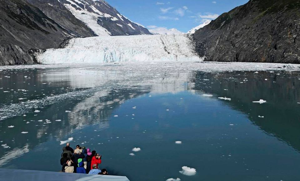 På rad og række byder gletsjerne sig til her i Prince William Sound. Vores katamaran, M/V Klondike, er en del af rederiet 26 Glaciers’ flåde. Fartøjet fører os i ekspresfart dybt ind i fjorden. Navnet på rederiet er ingen tilfældighed, for vi når faktisk at se 26 gletsjere i løbet af de fem timers sejlads i dette drømmeriske landskab af is, fjelde og masser af havdyr- og fugle. Sejladsen udgår fra kajen i den rare lille havneby, Whittier. Byen ligger såmænd kun hundrede kilometer sydøst for Anchorage, men føles som en verden væk fra storbyen. Alene køreturen hertil fra Anchorage er i sig selv det hele værd. Seward Highway byder på det ene panorama efter det andet. Især strækningen på Turnagain Arm imponerer med sine dramatiske bjerge og de blåglinsende fjorde. Sejlruten når op på næsten 240 kilometer i løbet af turen, og nogle gange kommer vi uhyre tæt på de kælvende gletsjere. Øredøvende naturlarm høres, når de op til 30 meter høje flager af is kollapser. Dette naturfænomen afføder da også en del bølger, som mærkes på dækket. Ombord slubrer vi fiskesuppe, krabber, havtaske og andre lækkerier i os. Vores energiske team-leader på båden, Lisa Kruse, lader stort set ingen spørgsmål ubesvarede: