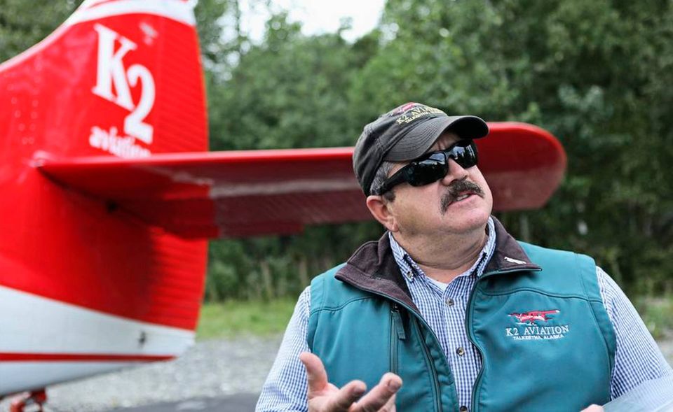 Dagen efter oplever vi Denali fra luften ombord i en 10 personers turboprop fra selskabet K2. Kaptajn Jeff Babcock er vores styrmand, og hans hensigt er at lande flyet på en gletsjer. Vejret tillader det dog ikke, men det fjerner ikke en brik ved det ubegribelige syn af især Mt. McKinley, som Jeff nu og da er yderst tæt på – nogle gange så nært, at man føler vingespidsen røre klippevæggene. Han fører flyet ind igennem drabelige slugter, over bræer og gletsjere.