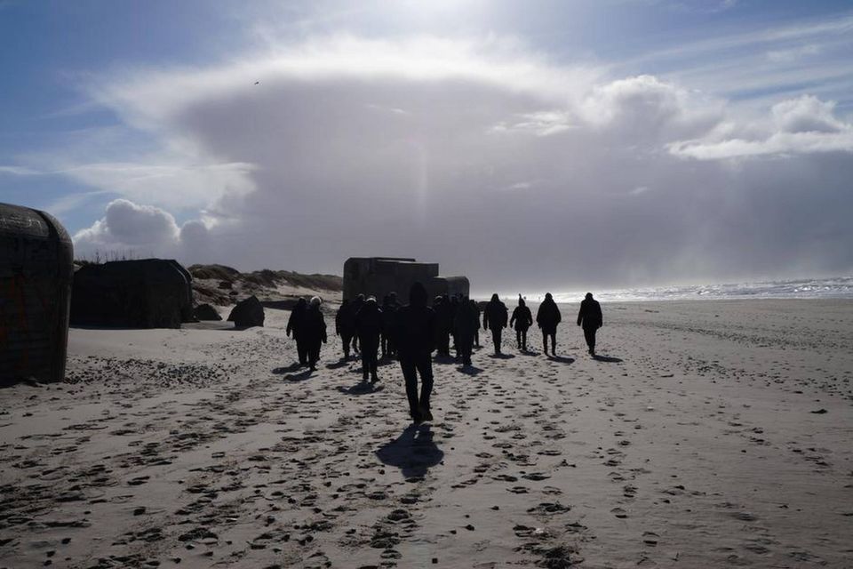 Det er heller ikke alle steder ved den vestjyske kyst, det ville være nemt at placere en sådan QR-kode. Hvor skal smartphonen for eksempel pege hen, når det gælder fortællingen om de otte millioner miner, der for at forhindre en invasion mod tyskerne blev skjult i sandet langs den såkaldte Atlantvold? Den samlede strækning løb fra Spanien i syd til det nordlige Norge, men alene i Danmark lå omtrent halvanden million miner gemt ved vestkysten fra Frederikshavn og ned til den dansk-tyske grænse. Da krigen sluttede i 1945, skulle de fjernes. Et arbejde, hovedsageligt tyske teenagesoldater skulle stå for. Godt 5.000 mand blev sat til opgaven. 149 døde. Mere end det dobbelte blev såret. Det fortæller René Hankelbjerg. Gruppen har nu slået ring om ham midt på stranden. Med hænderne dybt begravet i de vindtætte jakkers lommer og vesterhavsvinden som akkompagnerende tone til fortællingen om en grum tid i den danske historie. Men stadig en historie, vi skal interessere os for, mener René Hankelbjerg.