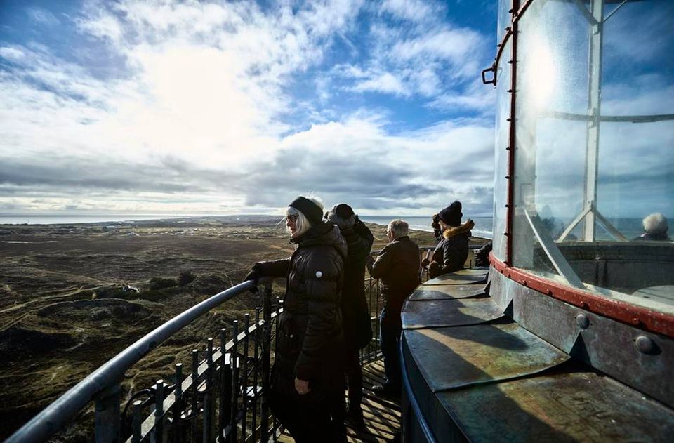 Den sidste udfordring er et par stejle trappetrin, man nærmest må kravle op ad. Men så venter belønningen også. På den ene side udkig over Vesterhavet. På den anden Ringkøbing Fjord. Skummende hvidt viser sig på bølgetoppene. Gule klitter snor sig i landskabet. Udsigten er idyllisk. Det er historien bag fyret ikke. Det blev bygget, da et norsk skib strandede ved kysten i 1903, og 24 søfolk som konsekvens mistede livet. Siden har fyret lyst op i mørket. Med undtagelse af under 2. verdenskrig. Her slukkede tyskerne det. Så havde de britiske tropper nemlig ikke noget at navigere efter.