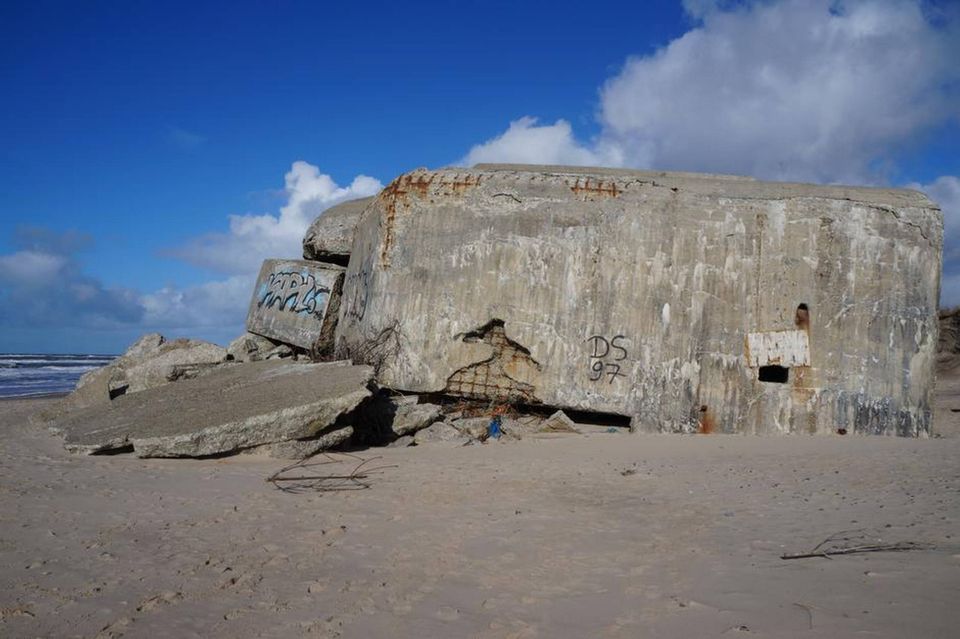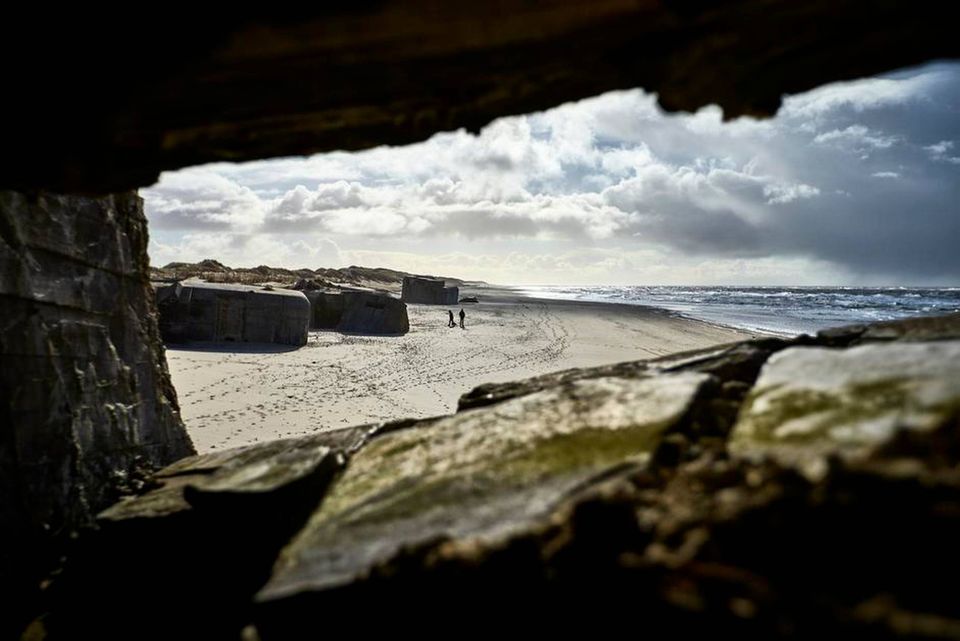Sandet er fugtigt og giver efter for de mange par sko, hvis aftryk sætter sine tydelige spor. Klittens gulbrune græs bøjer sig for vindens styrke. Håret flyver til alle sider, og kinderne rødmer i takt med, at der kun er én skrænts afstand til den flade strand, der løber ud i Vesterhavet. Dernede ligger en af dagens destinationer. En observationsbunker fra 2. verdenskrig. Ikke et enestående syn i Houvig Fæstningen ved Ringkøbing, som under krigen var et af de vigtigste tyske fæstningsanlæg i Danmark. I alt finder man her 50 bunkere og dertil omtrent 50 betonanlæg. Alt sammen skjult i Hvide Sandes klitter og for foden af havets bølger. Alt sammen levn fra krigen. Som boliger for soldaterne. Som kommandocentral. Som hjem for kanoner og maskingevær.