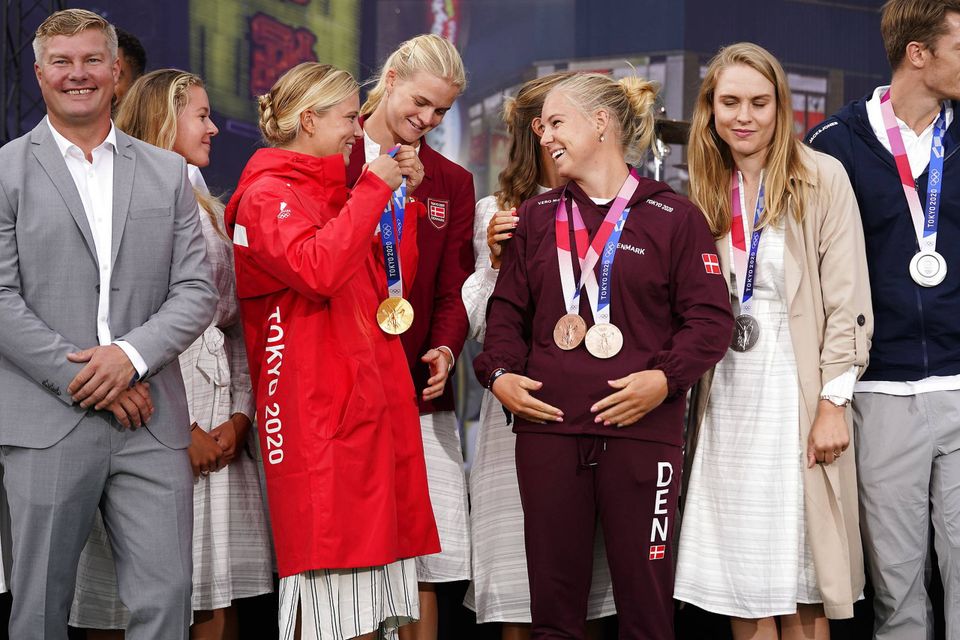 Smilet sad stadig på læberne af sejleren og OL-guldvinderen Anne-Marie Rindom, da hun mødte op ved Eksperimentarium. Foto: Nils Meilvang/Ritzau Scanpix.Lærke Marie Olsen deltog som den første kvindelige dansker nogensinde i Judo ved OL i Tokyo. Foto: Martin Sylvest/Ritzau Scanpix.En del danskere var mødt op i foyeen ved Eksperimentarium for at flage for de hjemvendte OL-atleter. Foto: Nils Meilvang/Ritzau Scanpix.OL-guldvinder i badminton i herresingle Viktor Axelsen og hans kæreste Natalia Koch Rohde ankom til velkomstfest. Foto: Nils Meilvang/Ritzau Scanpix.Der var mange, som gerne ville hilse på badmintonstjernen, og der blev også uddelt et par autografer. Foto: Nils Meilvang/Ritzau Scanpix.Der blev uddelt masser af kram. Her er det sølvmedaljevinder i banecykling Frederik Rodenberg, der får et. Foto: Martin Sylvest/Ritzau Scanpix.Mathias Gidsel hilste på nogle af de fremmødte. De danske håndboldherrer vandt sølv ved OL. Foto: Nils Meilvang/Ritzau Scanpix.Statsminister Mette Frederiksen mødte op for at fejre de danske OL-atleter. Foto: Nils Meilvang/Ritzau Scanpix.Festlighederne på taget af Eksperimentarium. Foto: Martin Sylvest/Ritzau Scanpix.Kulturminister Joy Mogensen deltog i festlighederne. Foto: Martin Sylvest/Ritzau Scanpix.Medaljevinderne kom på scenen under velkomstfesten. Det gjaldt selvfølgelig også dobbelt bronzemedaljevinder Emma Aastrand Jørgensen. Foto: Martin Sylvest/Ritzau Scanpix.Atleterne fik klapsalver med på vejen. Foto: Martin Sylvest/Ritzau Scanpix.