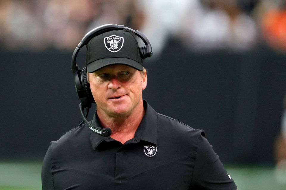 Jon Gruden var første gang cheftræner for Raiders fra 1998 til 2001, da holdet hed Oakland Raiders, og igen fra 2018 til nu.