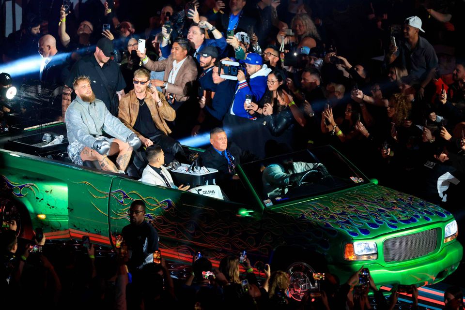 Der var skruet op for alle virkemidler, da Jake Paul sammen med broren Logan Paul kørte ind på AT&T Stadium i Arlington i en grøn bil med flammer på kølerhjelmen til tonerne af Phil Collins’ ”In the Air Tonight”.