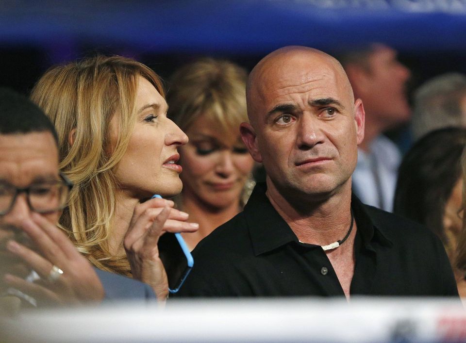 FOTO: Bieber, Agassi, Graf og Kimmel var på plads til "århundredets boksekamp"
