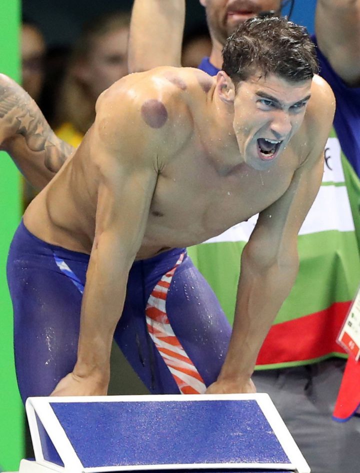 Det er en såkaldt kopbehandling, der skaber de cirkulære mærker. Behandlingen går ud på, at atleten sætter en ofte opvarmet kop med en dertilhørende pumpe på sin krop. Det skaber et undertryk i kroppen, og teknikken skulle angiveligt øge blodcirkulationen og dermed få ømme muskler til at restituere bedre.