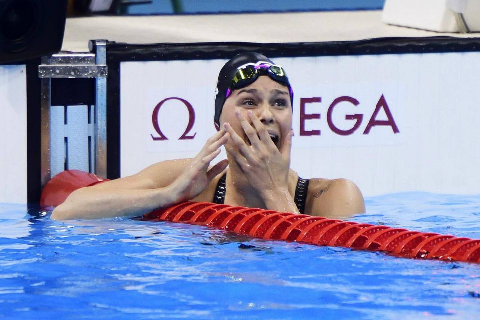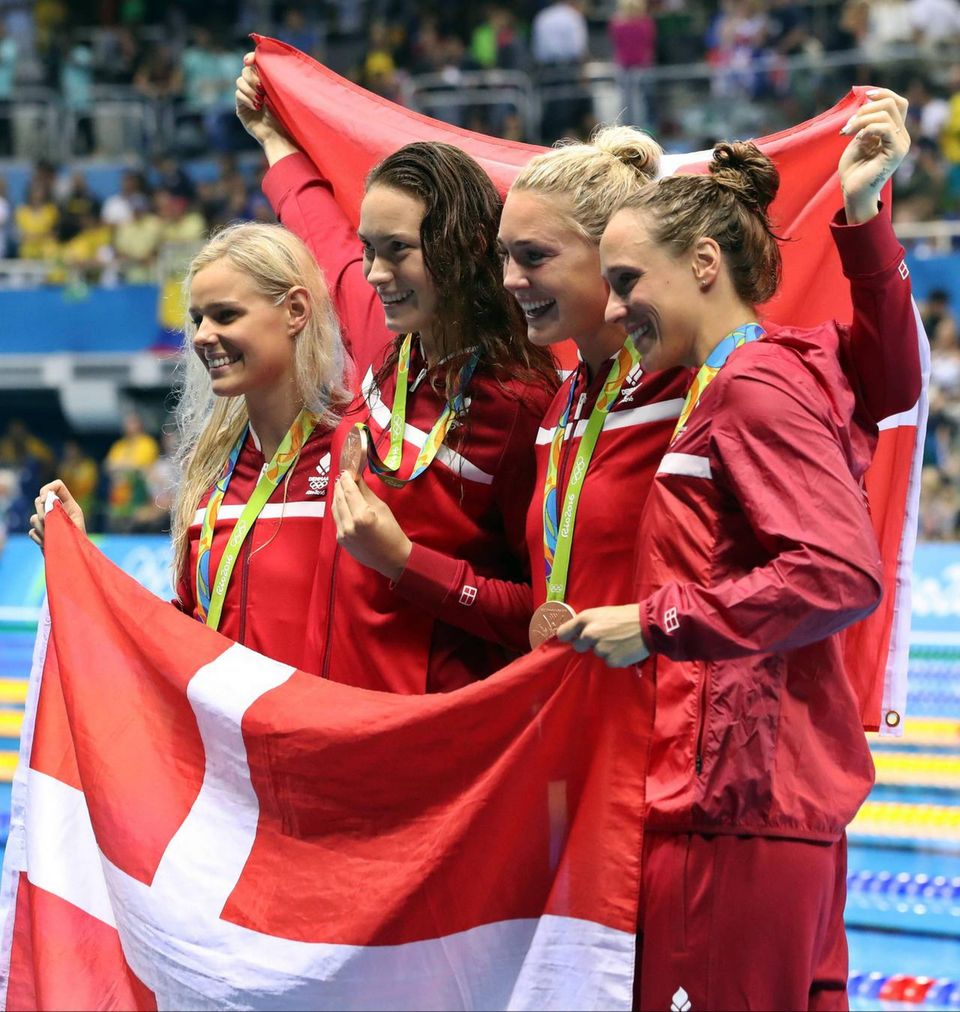 Klokken er 22.03 lokal tid i Rio de Janeiro, da otte unge kvinder kaster sig i vandet i The Olympic Aquatics Stadium, en eller to vejrtrækninger og under et halvt minut senere er de oppe i den anden ende.
