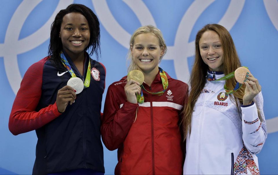 På bane 7 amerikaneren Simone Manuel, 20 år, fra Sugar Land, Texas, hun har allerede en OL-medalje i Rio, nemlig som vinder af den dobbelte distance, 100 meter fri. En af feltets favoritter.