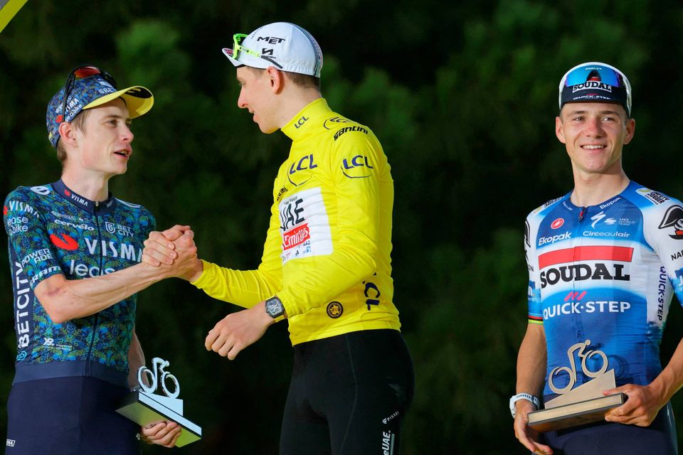 Med det henviste han også til Tadej Pogacar, der indtog pressemødet kort efter iført sin gule førertrøje.