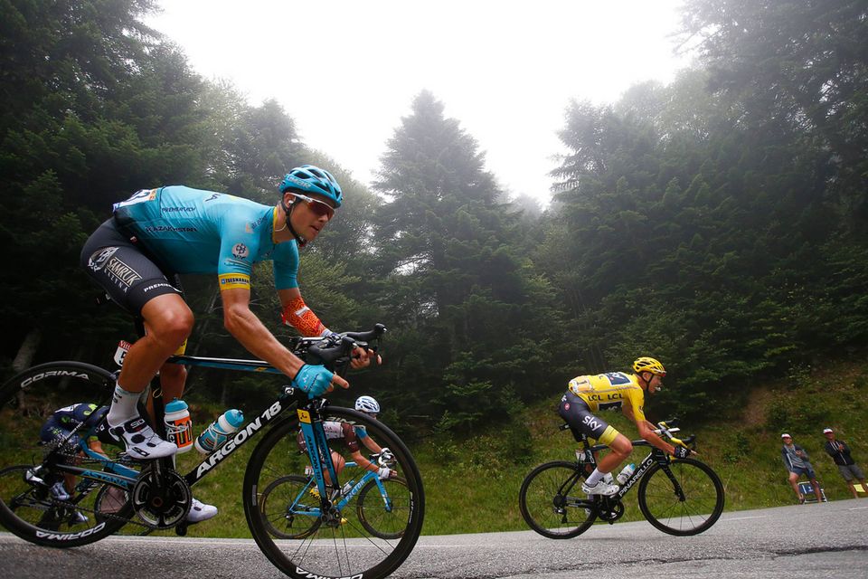 Aru angreb, da Fuglsang lå alene foran de øvrige favoritter på 9. etape. Det betød, at Chris Froome (Sky) og flere andre rivaler kørte kontra, kom op til Fuglsang og var ved at sætte Aru på stigningen.