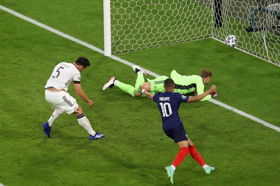 I en intens duel var det de franske verdensmestre, der trak det længste strå og vandt fortjent 1-0 på en gevaldig bommert af Mats Hummels efter 20 minutter.