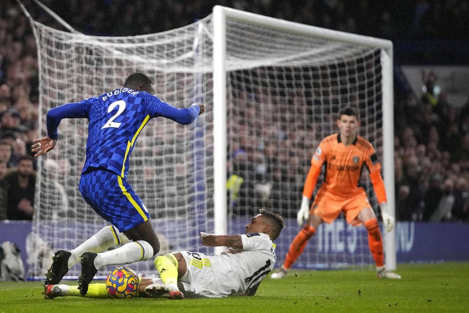 Efter en times spil kom Raphinha glidende og tacklede Chelsea-stopperen Antonio Rüdiger i feltet. Straffesparket omsatte Jorginho til 2-1 for hjemmeholdet.