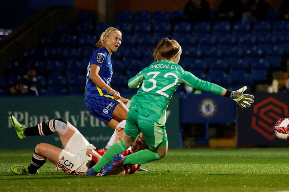 Pernille Harder åbnede scoringen for Chelsea mod Manchester United, som gav debut til dansk angriber.
