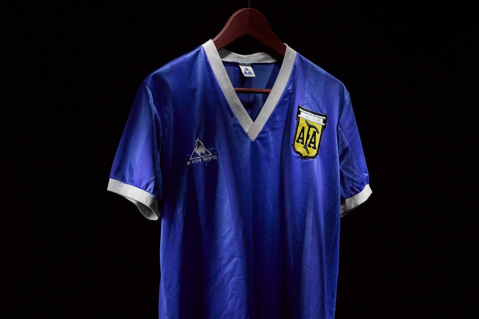 Trøjen som den afdøde argentinske fodboldspiller Diego Maradona havde på, da han scorede sit famøse mål med ”Guds hånd” mod England ved VM i 1986 bliver snart bortauktioneret.