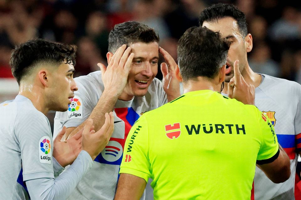 Lewandowski modtog det røde kort i en kamp i La Liga mod Osasuna 8. november, da polakken stødte sin albue i hovedet på en modspiller.