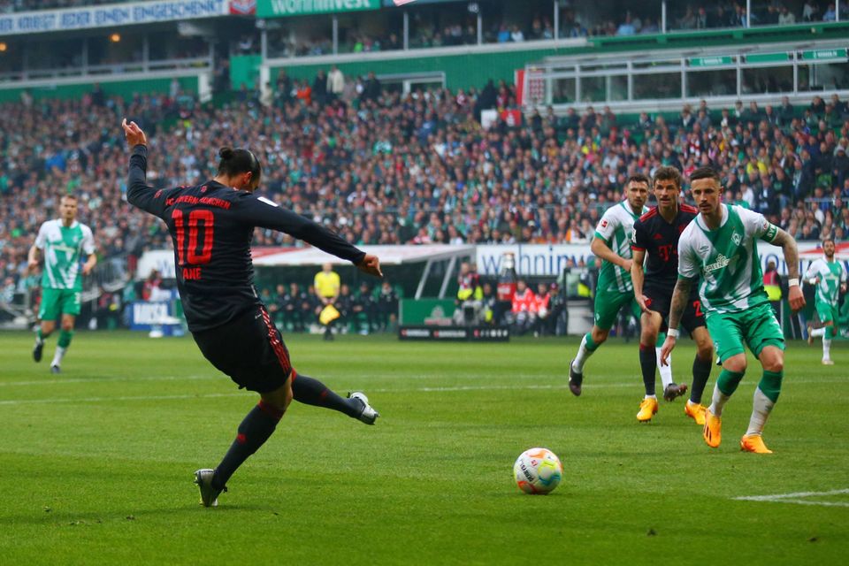 Med en 2-1-sejr på udebane over Werder Bremen er initiativet fortsat i sydtyskernes hænder i den tætte guldstrid med Dortmund.
