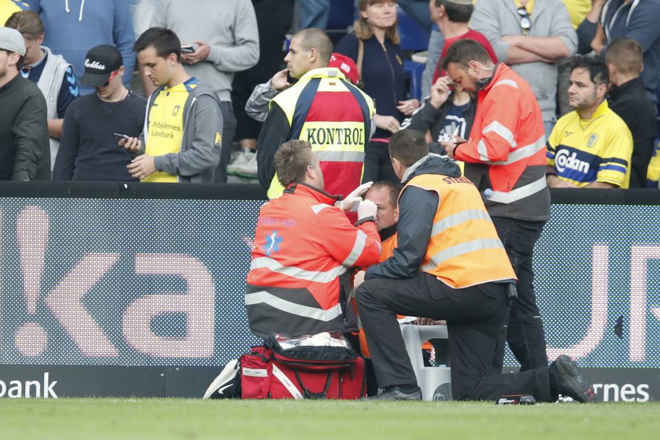 FCK-manager Ståle Solbakken ærgrer sig over den skandaløse afslutning på opgøret.