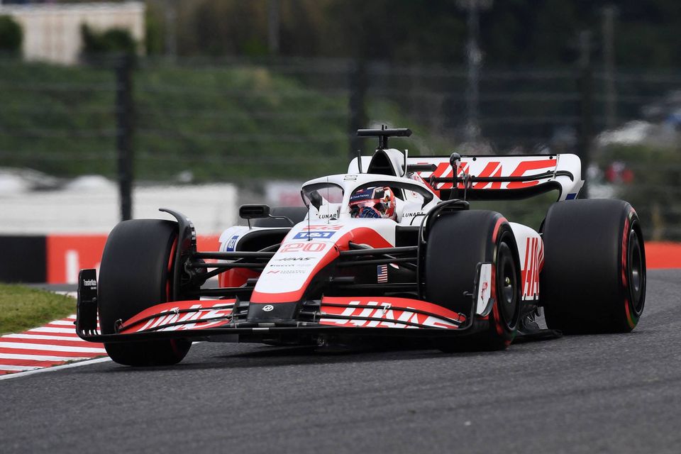 Den danske racerkører Kevin Magnussen (Haas) starter i den tunge ende af Formel 1-feltet i søndagens grandprix på Suzuka-banen i Japan.